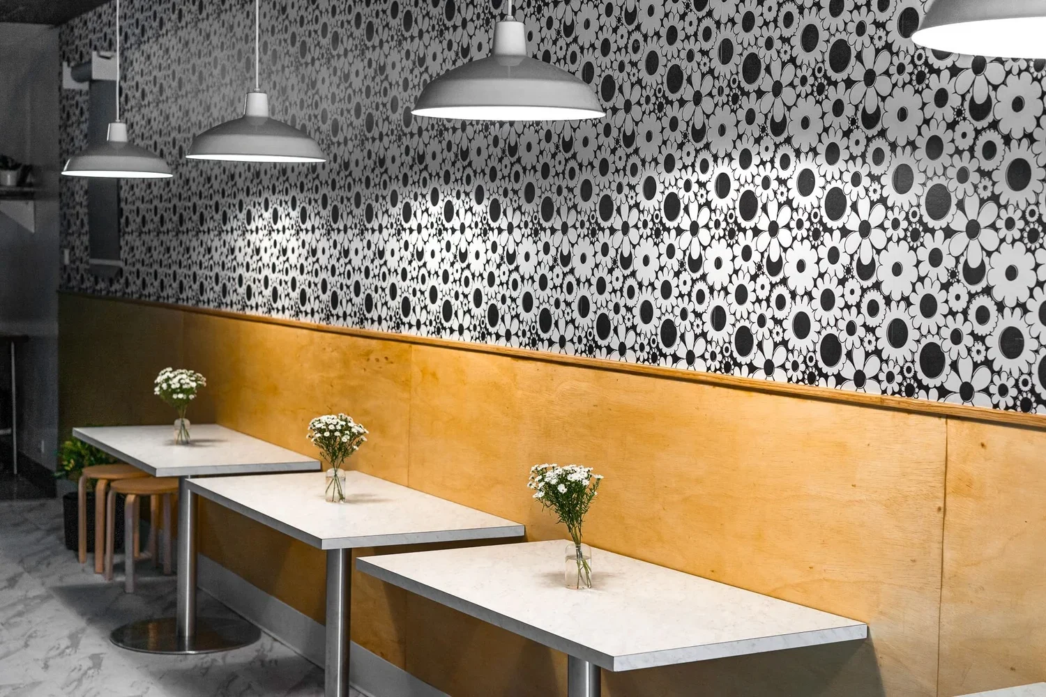 Flour Power Chicago is a cozy 640 sq ft pasta restaurant in Chicago’s West Town neighborhood, serving handcrafted pasta in a counter-service setting with limited seating. The brand embraces a ’70s-inspired aesthetic, combining retro charm with playful modern touches to make a big impact in a small space. A warm, nostalgic color palette paired with bold, friendly, playful typography evokes the decade’s spirit while remaining approachable and contemporary. The logo and visual identity incorporate subtle vintage flourishes, while menus, signage, and social media collateral maximize brand presence, ensuring every detail feels memorable and inviting despite the compact footprint.